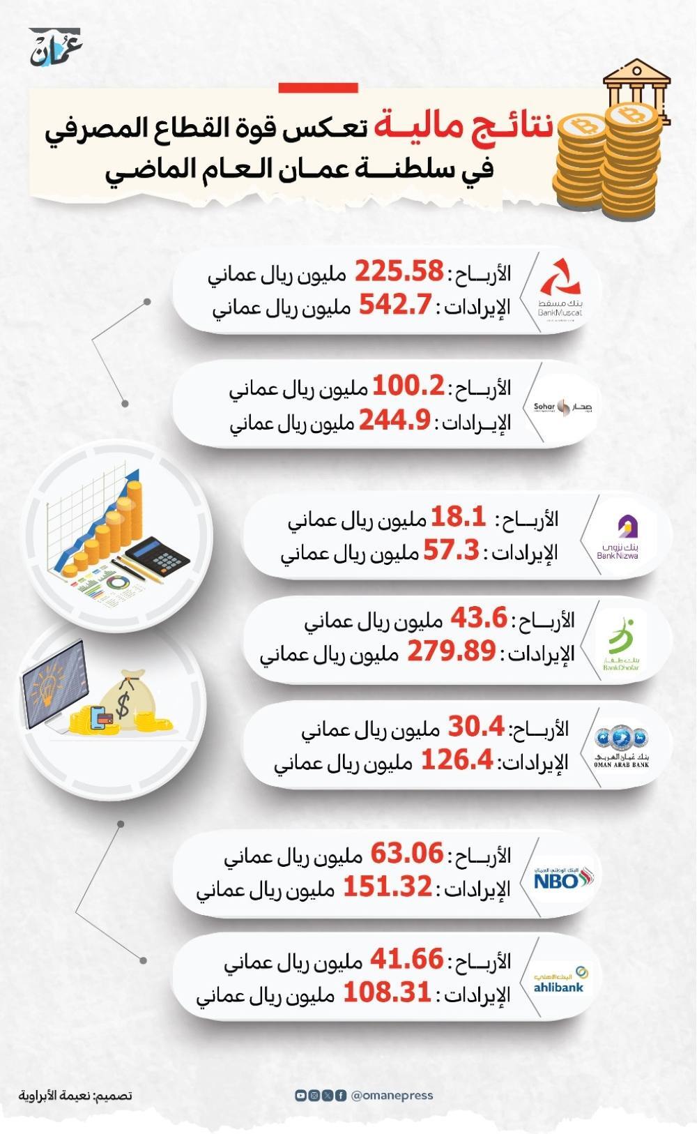 سجلت البنوك السبعة الكبرى في سلطنة عمان والمدرجة في بورصة مسقط العام الماضي أداءً إيجابيًا في أرباحها وإيراداتها، حيث شهدت زيادة ملحوظة في أرباحها لتصل إلى 499.25 مليون ريال عماني، فيما تجاوزت إيراداتها التشغيلية 1.5 مليار ريال عماني، ويعزى هذا النمو إلى تحسن البيئة الاقتصادية في سلطنة عمان نتيجة زيادة النشاط الائتماني، وارتفاع معدلات الفائدة، إلى جانب التوسع في الخدمات المصرفية الرقمية وتعزيز الكفاءة التشغيلية، كما أسهمت الاستثمارات المتزايدة في القطاعات غير النفطية، إضافة إلى استقرار السيولة في النظام المصرفي في دعم الأداء المالي القوي للبنوك. «بنك صحار» أما بنك صحار الدولي، فقد حقق ارتفاعًا في صافي أرباحه بعد الضريبة بنسبة 42% مسجلًا 100.2 مليون ريال عماني بنهاية العام الماضي مقارنة بــ 70.3 مليون ريال عماني للفترة المماثلة من عام 2023، كما ارتفع إجمالي الدخل التشغيلي بنسبة 50% ليصل إلى 244.9 مليون ريال عماني، مدفوعًا بزيادة كل من صافي دخل الفوائد والإيرادات التشغيلية الأخرى، ويعكس ذلك الأثر الكامل لعملية الاندماج مع بنك إتش إس بي سي حسان، وقد ارتفع إجمالي المصاريف التشغيلية بنسبة أقل بلغت 28% ليصل إلى 98.4 مليون ريال عماني، ما يعكس التأثير الإيجابي لعملية الاندماج، كما تحسنت نسبة المصاريف إلى الدخل المتصل إلى %40.2 مقارنة بـ47.1% في العام الماضي، وأوصى البنك بتوزيع أرباح نقدية على المساهمين بمقدار 8 بيسات لكل سهم عن السنة المالية المنتهية في 31 ديسمبر 2024م. وشهد إجمالي الأصول ارتفاعًا بنسبة 10% ليصل إلى 7.3 مليون ريال عماني، ويعزى ذلك بشكل رئيسي إلى زيادة بنسبة 9% في القروض والتمويلات الإسلامية وزيادة بنسبة 24% في الأوراق المالية الاستثمارية، كما ارتفعت ودائع الزبائن بنسبة 13% لتصل إلى 5.7 مليون ريال عماني، مع تحسن نسبة صافي القروض إلى ودائع الزبائن لتصل إلى 74% مقارنة بـ 77% في عام 2023، حيث ستمكن قوة البنك التمويلية وحجم السيولة المتميز للبنك مبادراته لتحقيق مزيد من النمو في سلطنة عمان، بالإضافة إلى تشغيل الفروع في المملكة العربية السعودية، وشهدت حقوق المساهمين زيادة بنسبة 28%، بدعم من إصدار حقوق بقيمة 130 مليون ريال عماني، ما يعكس استمرار دعم مساهمي البنك. «بنك نزوى» ونمت أرباح بنك نزوى لتبلغ بعد الضريبة 18.1 مليون ريال عماني مرتفعا بنسبة 6% بنهاية العام -ديسمبر 2024 مقارنة بـ17 مليون ريال عماني بنهاية عام 2023، وبلغ إجمالي إيرادات البنك 57.3 مليون ريال عماني مرتفعة بنسبة 4% مقارنة بـ55.3 مليون ريال للفترة نفسها عام 2023، وسجلت المصروفات الكلية للبنك ارتفاعا بنسبة 3% لتبلغ 28.5 مليون ريال عماني مقارنة بـ27.6 مليون ريال عماني للفترة نفسها عام 2023. واقترح مجلس إدارة بنك نزوى ش.م.ع.ع في 29 يناير 2025 تحسين هيكل رأس المال الحالي للبنك من خلال إنشاء برنامج إعادة شراء الأسهم لمرة واحدة، حيث سيتم تخصيص أموال بقيمة 5 ملايين ريال عماني لشراء الأسهم من السوق الثانوية بعد الحصول على الموافقة اللازمة من البنك المركزي العماني وهيئة الخدمات المالية، إلى جانب تصميم مبادرة إعادة شراء الأسهم لتحسين عوائد المساهمين والربحية مع ضمان احتفاظ البنك بموقف قوي من رأس المال والسيولة. كما وافق البنك على توزيع أرباح نقدية وصكوك بنسبة مقدارها 7.03% من رأس المال المدفوع بمقدار 2.45 بيسة كأرباح نقدية بنسبة 2.49% من رأس المال المدفوع، وصكوك إلزامية التحول لأسهم في الشريحة الأولى بنسبة 4.54% من رأس المال المدفوع تعادل مبلغا قدره 9.9 مليون ريال عماني عن الفترة المالية المنتهية بتاريخ 31 ديسمبر 2024م على أن يتم دفعها بالكامل من الأرباح المحتجزة، وسوف تبلغ نسبة كفاية رأس المال بعد توزيع الأرباح نسبة مقدارها 15.36% وهي أعلى من الحد الأدنى المطلوب من الجهات الرقابية. «بنك ظفار» حقق بنك ظفار أرباحا صافية بلغت 43.61 مليون ريال عماني للسنة المنتهية في31 ديسمبر 2024 مقارنة بصافي الأرباح البالغة 38.76 مليون ريال عماني للفترة ذاتها من عام 2023 ما يمثل زيادة قدر