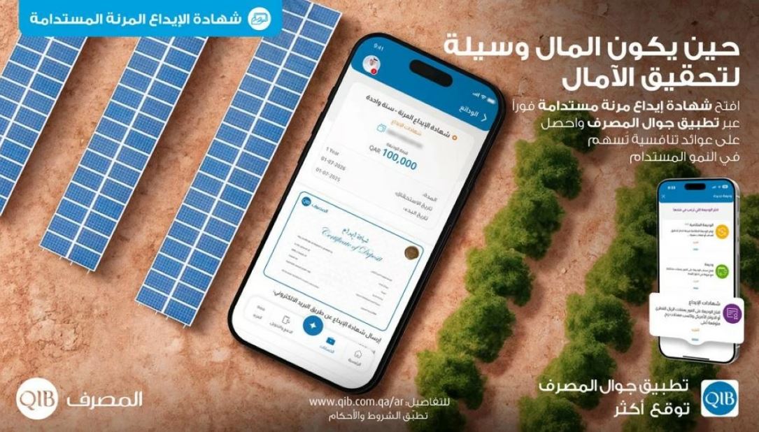 أعلَنَ مصرف قطر الإسلامي (المصرف)، رائد الصيرفة الرقمية في قطر، عن تعزيز شهادة الإيداع المرنة، بما يتماشى مع مبادئ التمويل المستدام لدعم المشاريع الخضراء والمشاريع الاجتماعية. وتواصل شهادة الإيداع المرنة المطوّرة تقديم عوائد مجزية ومرونة عالية، مع الإسهام في تحقيق أثر بيئي واجتماعي إيجابي. وسيتم توجيه الأموال المستثمرة في هذه الشهادات إلى تمويل مبادرات صديقة للبيئة، بما في ذلك الطاقة النظيفة، ومكافحة التلوث، والمباني الخضراء، والتعليم، والرعاية الصحية، مما يتيح للعملاء فرصة تنمية مدخراتهم ودعم مستقبل أكثر استدامة. تُعدّ شهادة الإيداع المرنة من المصرف منتج «مضاربة» استثماري يوفر للعملاء من الأفراد إمكانية تحصيل الأرباح مع نهاية كل ربع، وإجراء عمليات تخارج مبكرة وجزئية خلال فترة سريان الشهادة الخاصة بهم. وفي حالة التخارج الجزئي المبكر، سيستمر الرصيد المتبقي في تحقيق نفس معدل الربح المتوقع. ويمكن للعملاء طلب هذه الشهادات فورًا وبشكل آمن عبر تطبيق جوال المصرف. من خلال تطبيق جوال المصرف، يمكن للعملاء إجراء ما يصل إلى استردادين جزئيين بدون أي رسوم، بشرط ألا تتجاوز قيمة الاستردادين 50% من القيمة الأصلية للشهادة. بالإضافة إلى ذلك، يمكن لحاملي شهادة الإيداع المرنة التقدّم بطلب للحصول على تمويل بنسبة تصل إلى 100% من قيمة الشهادة، على أن تكون مدة التمويل مساوية لمدة استحقاق الشهادة. ويبلغ الحد الأدنى للاشتراك 100,000 ريال أو 25,000 دولار أمريكي. ويطرح المصرف هذه الشهادة لتشجيع العملاء على الادخار لفترات طويلة مع حصولهم على نسبة ربح سنوية مجزية تعتمد على مدة الشهادة والعملة المختارة. وتتوفر شهادات الإيداع المرنة بمجموعة من الخيارات بالريال القطري والدولار الأمريكي، ومدة استحقاق سنة واحدة، أو سنتان، أو ثلاث سنوات. وقال السيد د. أناند، المدير العام لمجموعة الخدمات المصرفية للأفراد في المصرف: في إطار سعينا المتواصل لتحقيق أهداف الاستدامة، يسرنا أن نقدم لعملائنا فرصة الاستثمار بطريقة تحقق لهم عوائد مالية وبيئية واجتماعية.