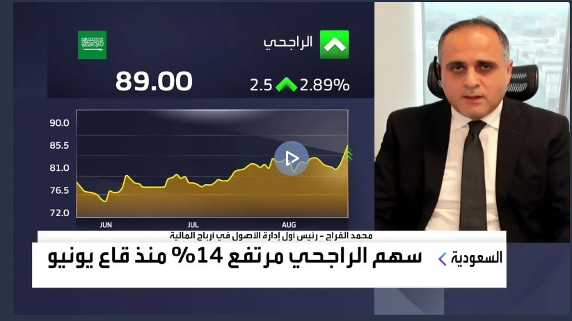 توقع محمد الفراج رئيس أول إدارة الأصول في "أرباح المالية"، نموا إيجابيا في نتائج القطاع المصرفي السعودي في الربع الثالث من العام الحالي، وخصوصا مصرف الراجحي. وأضاف في مقابلة مع "العربية Business"، أن سهم "مصرف الراجحي" شهد سيولة عالية خلال الجلسات الأخيرة من خلال صفقات خاصة بقيمة 1.1 مليار ريال في جلسة أمس، متوقعا أن يضخ صغار المستثمرين ومدراء المحافظ، أيضا سيولة في السهم ما ساعده في الارتفاع من مستويات الـ86 ريالا إلى مستويات 89 ريالا.