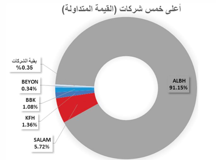 الأربعاء ٠٨ نوفمبر ٢٠٢٣ - 02:00 أقفل «مؤشر البحرين العام» يوم أمس الثلاثاء عند مستوى 1,923.95 بارتفاع قدره 3.20 نقاط مقارنة بإقفاله يوم الإثنين، في حين أقفل «مؤشر البحرين الإسلامي» عند مستوى 720.17 بارتفاع قدره 1.33 نقطة مقارنة بإقفاله السابق. وقد تداول المستثمرون في «بورصة البحرين» 3.63 ملايين سهم، بقيمة إجمالية قدرها 2.80 مليون دينار بحريني، تم تنفيذها من خلال 90 صفقة، حيث ركز المستثمرون تعاملاتهم على أسهم قطاع المواد الاساسية الذي بلغت قيمة أسهمه المتداولة 2.55 مليون دينار أي ما نسبته 91.15% من القيمة الإجمالية للتداول وبكمية قدرها 2.34 مليون سهم، تم تنفيذها من خلال 43 صفقة. وجاءت ألمنيوم البحرين (ألبا) في المركز الأول إذ بلغت قيمة أسهمها المتداولة 2.55 مليون دينار أي ما نسبته 91.15% من إجمالي قيمة الأسهم المتداولة وبكمية قدرها 2.34 مليون سهم، تم تنفيذها من خلال 43 صفقة. أما المركز الثاني فكان لبنك السلام بقيمة قدرها 160.01 ألف دينار أي ما نسبته 5.72% من إجمالي قيمة الأسهم المتداولة وبكمية قدرها 873.27 ألف سهم، تم تنفيذها من خلال 20 صفقة. ثم جاء بيت التمويل الكويتي (بيتك) بقيمة قدرها 38.19 ألف دينار أي ما نسبته 1.36% من إجمالي قيمة الأسهم المتداولة وبكمية قدرها 45.20 ألف سهم، تم تنفيذها من خلال 5 صفقات. وقد تم يوم أمس تداول أسهم 12 شركة، ارتفعت أسعار أسهم شركتين، في حين انخفضت أسعار أسهم 4 شركات، وحافظت بقية الشركات على أسعار إقفالاتها السابقة.