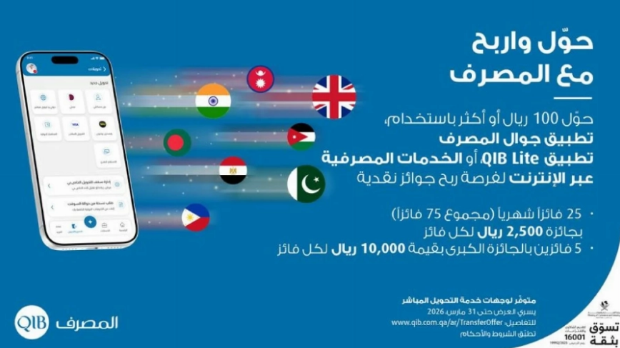 أطلَقَ مصرف قطر الإسلامي (المصرف)، حملة «حوّل واربح» الجديدة، تعزيزًا لخدمات التحويل المباشر السريعة والمريحة وذات التكلفة المناسبة لتحويل الأموال، والمتاحة للعملاء على مدار الساعة طوال أيام الأسبوع من خلال تطبيق جوال المصرف، تطبيق QIB Lite والخدمات المصرفية عبر الإنترنت. ومن خلال القنوات الرقمية للمصرف، يمكن للعملاء إرسال الأموال فورًا إلى المستفيدين بأسعار صرف تنافسية، مما يوفر بديلًا فعالًا من حيث التكلفة لطرق التحويل التقليدية. وفي إطار التزامه المستمر بتقديم تجربة تحويل رقمية سلسة ومجزية، يطلق المصرف هذه الحملة الجديدة التي تستمر لمدة ثلاثة أشهر حتى 31 مارس 2026. وخلال فترة الحملة، سيحظى العملاء الذين يقومون بإجراء تحويلات دولية بقيمة 100 ريال قطري أو أكثر لوجهات خدمة التحويل المباشر وهي: الأردن، مصر، الهند، باكستان، الفلبين، بنجلاديش، ونيبال، بفرصة الفوز بجوائز نقدية. وتسري الحملة على التحويلات التي تتم عبر خدمة التحويل المباشر من المصرف، بما في ذلك التحويلات إلى الحسابات البنكية، والتحويلات إلى المحافظ الإلكترونية، وخدمات الاستلام النقدي، للمستفيدين في الدول المذكورة أعلاه. ومقابل كل عملية تحويل مؤهلة إلى إحدى الدول المشاركة، سيحصل العملاء على فرصة واحدة للدخول في السحب الشهري، حيث سيتم مكافأة 75 فائزًا بمبلغ 2,500 ريال قطري، وسيتم الإعلان عن 25 فائزًا كل شهر. بالإضافة إلى ذلك، ومقابل كل ثلاث عمليات تحويل مؤهلة خلال فترة الحملة، سيحصل العملاء على فرصة واحدة للدخول في السحب الكبير، حيث سيحصل خمسة فائزين على جائزة نقدية قدرها 10,000 ريال قطري لكل منهم، وسيتم الإعلان عنهم في نهاية الحملة. وقال السيد د. أناند، المدير العام لمجموعة الخدمات المصرفية للأفراد في المصرف»QIB»: يواصل المصرف تعزيز خدمات التحويل الدولية لتزويد العملاء بطريقة سريعة وآمنة وفعالة من حيث التكلفة لإرسال الأموال في أي وقت ومن أي مكان. وتعكس هذه الحملة التزامنا بمكافأة العملاء على استخدام قنواتنا الرقمية، مع تعزيز مكانة المصرف كشريك مصرفي موثوق يتفهم ويدعم احتياجاتهم المالية اليومية. وتستهدف هذه المبادرة قاعدة عملاء المصرف المتنوعة من الأفراد، بمن فيهم المواطنون والمقيمون الذين يقومون بتحويل الأموال بانتظام إلى الخارج لدعم العائلة، والتوفير أو الاستثمار، والنفقات، مما يوفر لهم مزيدًا من الراحة إلى جانب مكافآت مجزية.