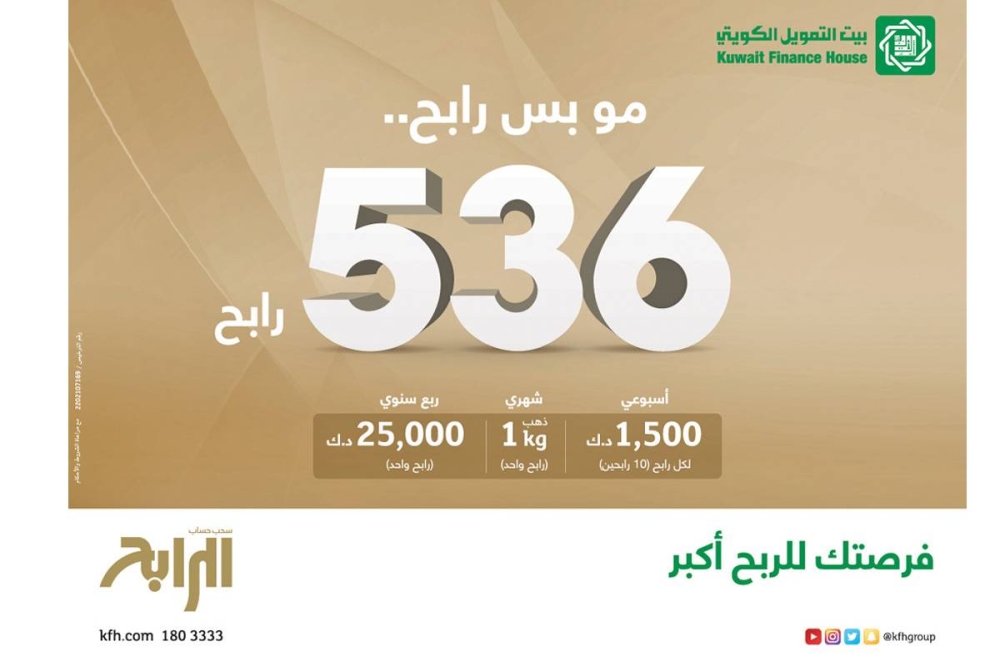 أعلن بيت التمويل الكويتي «بيتك» أسماء الفائزين في حساب الرابح، حيث فاز 20 عميلا بجوائز نقدية قيمة كل منها 1500 دينار، عن الأسبوعين السابع والعشرين والثامن والعشرين لسنة 2023. والفائزون بالجائزة النقدية بقيمة 1500 دينار لكل منهم هم: أنس حسين كاندي، دعاء مبارك الكندري، دلال محمد العجمي، مهنا سالم الحياني، بينوي توماس كوريكاتيل، أحمد فؤاد الشهاب، فيصل عبدالله الفرج، ناصر بدر بورسلي، فالح شعوى المطيري، سعود سعد العتيبي، عمر حماداش، نوال عبدالوهاب التمار، شروق وليد التناك، نوال مطلق الخرشان، علي عوض الدويخ، فرج عبدالله صديقي، ضاري مشاري المشاري، عادل عبدالله الخريف، عبدالعزيز عبدالرزاق المشاري، إيناس الناجي المثلوثي. وتتضمن حملة حساب «الرابح» عدة سحوبات وجوائز تمنح العملاء فرصة الفوز «أسبوعيا، وشهريا، وربع سنويا»، ليصل مجموع الفائزين خلال العام الى 536 عميلا. وأجري السحب في المقر الرئيسي لـ«بيتك» تحت إشراف ممثل وزارة التجارة والصناعة. وتأتي الحملة انطلاقا من سعي «بيتك» المتواصل إلى تقديم منتجات متميزة تلبي طموحات العملاء وتعزز مكانته الرائدة محليا وعالميا، وتعكس تميزه في طرح المنتجات والخدمات المصرفية وفقا لأعلى معايير الجودة. وحساب الرابح هو حساب راتب يتوفر للعملاء الراغبين في تحويل رواتبهم وإدارة حساباتهم الشخصية، ويفتح حساب «الرابح» بالدينار الكويتي للأفراد عبر فروع «بيتك» المنتشرة في الكويت أو عن طريق القنوات الإلكترونية المتاحة، ويشترط تحويل الراتب كشرط أساسي لدخول السحب، واستمرار تحويله في الحساب.