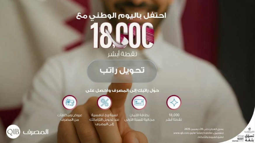 أطلقَ مصرفُ قطر الإسلاميُّ (المصرف)، حملةً خاصةً لتحويل الراتب بمناسبة اليوم الوطني لدولة قطر 2025، تتيح للعملاء الحصول على نقاط مكافآت «أبشر» وبطاقة ائتمان مجانية للسنة الأولى عند تحويل رواتبهم إلى المصرف خلال فترة الحملة، والتي تسري حتى 20 ديسمبر 2025. الحملة متاحة للعملاء الجدد والحاليين الذين يقومون بتحويل رواتبهم الشهرية إلى المصرف بحد أدنى للراتب يبلغ 10,000 ريال. وسيحصل العملاء المؤهلون على 18,000 نقطة مكافآت «أبشر»، بالإضافة إلى بطاقة ائتمان مجانية للسنة الأولى، مع نسبة ربح تنافسية عند تحويل التزاماتهم إلى المصرف وذلك وفقًا للشروط والأحكام. وقالَ السيدُ د. أناند، مدير عام مجموعة الخدمات المصرفية للأفراد في المصرف: « يسرّنا الاحتفال باليوم الوطني لدولة قطر مع عملائنا الكرام، من خلال مكافأتهم على اختيار المصرف كشريكهم المصرفي الأساسي. وتعكس هذه الحملة الخاصة بتحويل الراتب التزام المصرف المستمرّ بتوفير قيمة مضافة، ومكافآت قيّمة، وحلول مصرفية مريحة تدعم احتياجات عملائِنا الماليّة وتطلّعاتهم، مع مشاركتهم في أجواءِ الاحتفالات الوطنية». ويمكنُ للعملاءِ كسب نقاط مكافآت «أبشر» في كل مرة يستخدمون فيها منتجات وخدمات المصرف، بما في ذلك تحويل رواتبهم إلى المصرف للمرة الأولى، وفتح حسابات الودائع، واستخدام بطاقات الخصم والائتمان من المصرف، والتسجيل في تطبيق جوال المصرف، وإجراء التحويلات الدولية عبر التطبيق. ويمكن استبدال هذه النقاط محليًا ودوليًا بمجموعة واسعة من المكافآت، مثل حجز تذاكر الطيران مع أكثر من 900 شركة طيران، وحجوزات الفنادق في أكثر من 450,000 فندق، بالإضافة إلى التسوق عبر الإنترنت والقسائم الإلكترونية لدى شركاء البَرنامج، بما في ذلك المتاجر الكبرى ودور السينما، ومتاجر الهدايا، وتطبيقات المطاعم والمواصلات. كما يمكن استخدام نقاط «أبشر» لتسديد فواتير أريدُ وفودافون وكهرماء، أو تحويلها إلى برامج الولاء الخاصة بشركات الطيران مثل نقاط أفيوس من الخطوط الجوية القطرية، ما يتيح للعملاء الاستمتاع بقيمة أكبر من تعاملاتهم المصرفية اليومية مع المصرف.