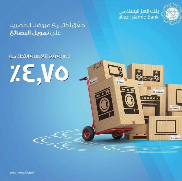 أطلق بنك العز الإسلامي عرضا خاصا للراغبين في تمويل البضائع بنسبة ربح مخفضة تبلغ 4.7% فقط، ويندرج تمويل البضائع تحت منتج التمويل الشخصي سواء كان العميل يرغب في شراء أثاث أو معدات وأجهزة كهربائية أو غيرها من الأدوات المنزلية، وبأسعار تنافسية. ويقوم التمويل الشخصي من بنك العز الإسلامي على مبدأ "المرابحة"، حيث يتقدم العميل بطلب تمويل بضاعة محددة مرفقا بعرض أسعار من البائع، ويعد العميل بشرائها من البنك بعد تملك البنك لها، وعليه يقوم البنك بشراء البضاعة من البائع ومن ثم يبيع البضاعة للعميل مرابحة مقابل ثمن معين يتم دفعه على أقساط مؤجلة. وكشف محمد بن جمعة الغساني، مساعد المدير العام رئيس الخدمات المصرفية الاستهلاكية للأفراد، أن تمويل البضائع متاح للعمانيين والمقيمين ويمكن شراء أي نوع من البضائع المتوافقة مع أحكام الشريعة الإسلامية التي يطلبها العميل مع معرفة هامش الربح والأقساط قبل توقيع العقد، وكذلك يصل التمويل لغاية 100% من قيمة البضائع، كما يتوجب تحويل الراتب لأي فرع من فروع البنك، كما أن هذا العرض متاح لجميع الأفراد سواء الموظفين أصحاب الرواتب أو الموظفين لحسابهم الخاص . ويوفر بنك العز الإسلامي خيار تمويل البضائع أيضا مثل الأثاث والإكسسوارات والإلكترونيات وغيرها من المنتجات من خلال صالات العرض في الدانوب هوم وإنزا هوم ومصطفى سلطان للإكترونيات وسوفا لاندز وأثاث فهمي، حيث يمكن لعملاء بنك العز الإسلامي التمويل من المتجر فوراً لمدة تصل إلى 120 شهرًا دون الحاجة إلى زيارة أي فرع من أفرع بنك العز الإسلامي . وقد تم تبسيط عملية الحصول على التمويل في مدة زمنية تتراوح بين 10 دقائق فقط عبر المحاسب، حيث سيخضع العميل لعملية التحقق من خلال الرقم السري لمرة واحدة والذي سيصل على رقم هاتفه المسجل لدى البنك ومن ثم توقيع عقد التمويل بعد الحصول على موافقة فورية. وتأتي خدمة التمويل الفوري للتمويل الشخصي كجزء من خطط بنك العز الإسلامي لتقديم مجموعة واسعة من الحلول المصرفية المصممة بعناية فائقة والتي تلبي احتياجات جميع العملاء، كما يأتي ذلك تلبية لحاجة العملاء في الحصول على الحلول المصرفية السريعة في إنجاز معاملاتهم المصرفية.