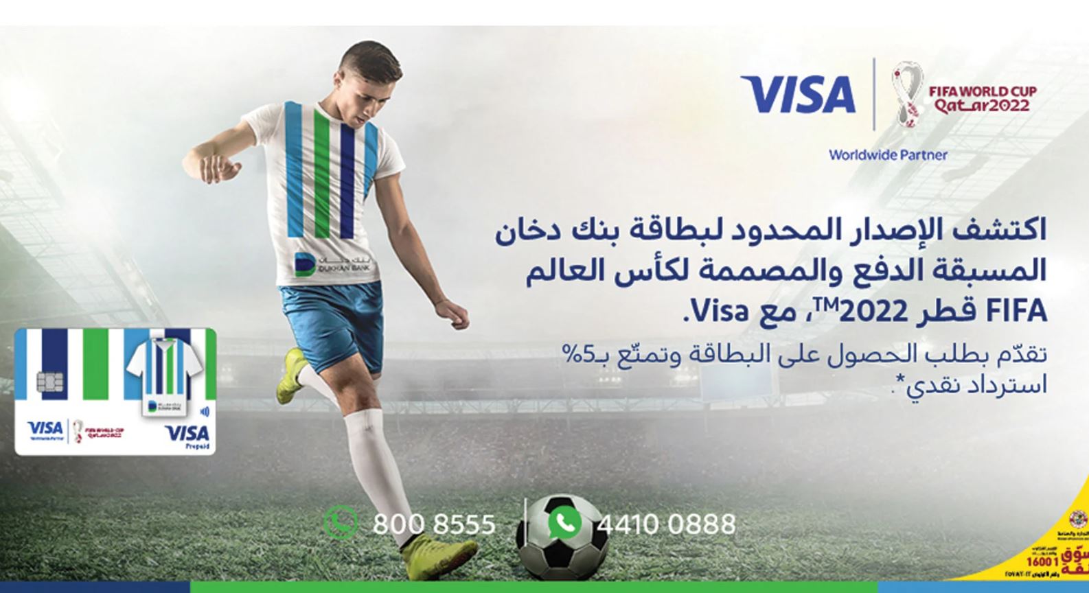 أعلنَ بنك دخان، بالتعاون مع شركة Visa، إطلاق إصدار خاص من بطاقات Visa مسبقة الدفع لكأس العالم FIFA قطر 2022™ مع مكافأة استرداد نقدي بنسبة 5٪، وذلك احتفالًا باقتراب موعد انطلاق منافسات البطولة العالمية الكبرى. يأتي الإصدارُ الخاص من بطاقات Visa مسبقة الدفع لكأس العالم FIFA قطر 2022™ في أعقاب كشف بنك دخان مؤخرًا عن بطاقات Visa بلاتينيوم وVisa سيغنتشر الائتمانية، احتفاءً بهذه البطولة التاريخية التي تُقامُ بمنطقة الشرق الأوسط لأول مرة خلال شهري نوفمبر وديسمبر المقبلين في دولة قطر. ستمنحُ هذه البطاقة مسبقة الدفع حاملها مكافأة استرداد نقدي بنسبة 5٪، تُضاف إلى حسابه عند إنفاق 100 ريال قطري على الأقل، بحيث يكون الحد الأقصى للمكافأة 50 ريالًا قطريًا شهريًا، يسري هذا العرض حتى 31 ديسمبر 2022. وبهذه المناسبة، قال السيّد طلال أحمد الخاجة، الرئيس التنفيذي للتسويق والاتصال في بنك دخان: مع اقترابنا من بطولة كأس العالم FIFA قطر 2022™ وما تشهده دولة قطر حاليًا من استعدادات لاستضافة هذا الحدث العالمي، يسعدنا تعزيز تعاوننا مع شركة Visa بالكشف عن إصدارنا المحدود من بطاقات Visa مسبقة الدفع لكأس العالم FIFA قطر 2022™.