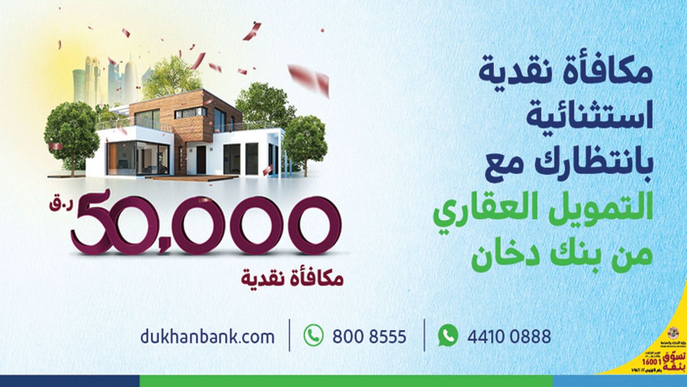 أعلنَ بنكُ دخان، البنكُ الرائد في قطر، عن إطلاق أحدث حملاته الترويجية على التمويل العقاري ابتداءً من فبراير 2022 ولمدة 3 أشهر. ويمكن للعملاء الجدد والحاليين الآن الاستفادة من التمويل العقاري من بنك دخان والذي يتيح للعملاء الاستفادة من مكافأة نقدية بقيمة 50,000 ريال قطري على طلبات التمويل العقاري التي تتجاوز قيمتها 2 مليون ريال قطري يتم سدادها في مدة لا تقل عن 15 عامًا، وفترة سماح مدتها 12 شهرًا. وتعليقًا على إطلاق هذه الحملة، صرح بنك دخان: «تأتي هذه الحملة الجديدة للتمويل العقاري من أجل توفير حل مالي مناسب لمن يرغبون في شراء منزل أحلامهم، مع منحهم أيضًا فرصة الاستفادة من مكافأة نقدية بقيمة 50,000 ريال قطري. يلتزم بنك دخان التزامًا راسخًا بتطوير الحلول والخدمات المصرفية المبتكرة التي تساهم في تلبية تطلعات عملائه الكرام، وبما يدعم مساعيه إلى أن يكون عن جدارة «الخيار المصرفي المفضل في قطر».