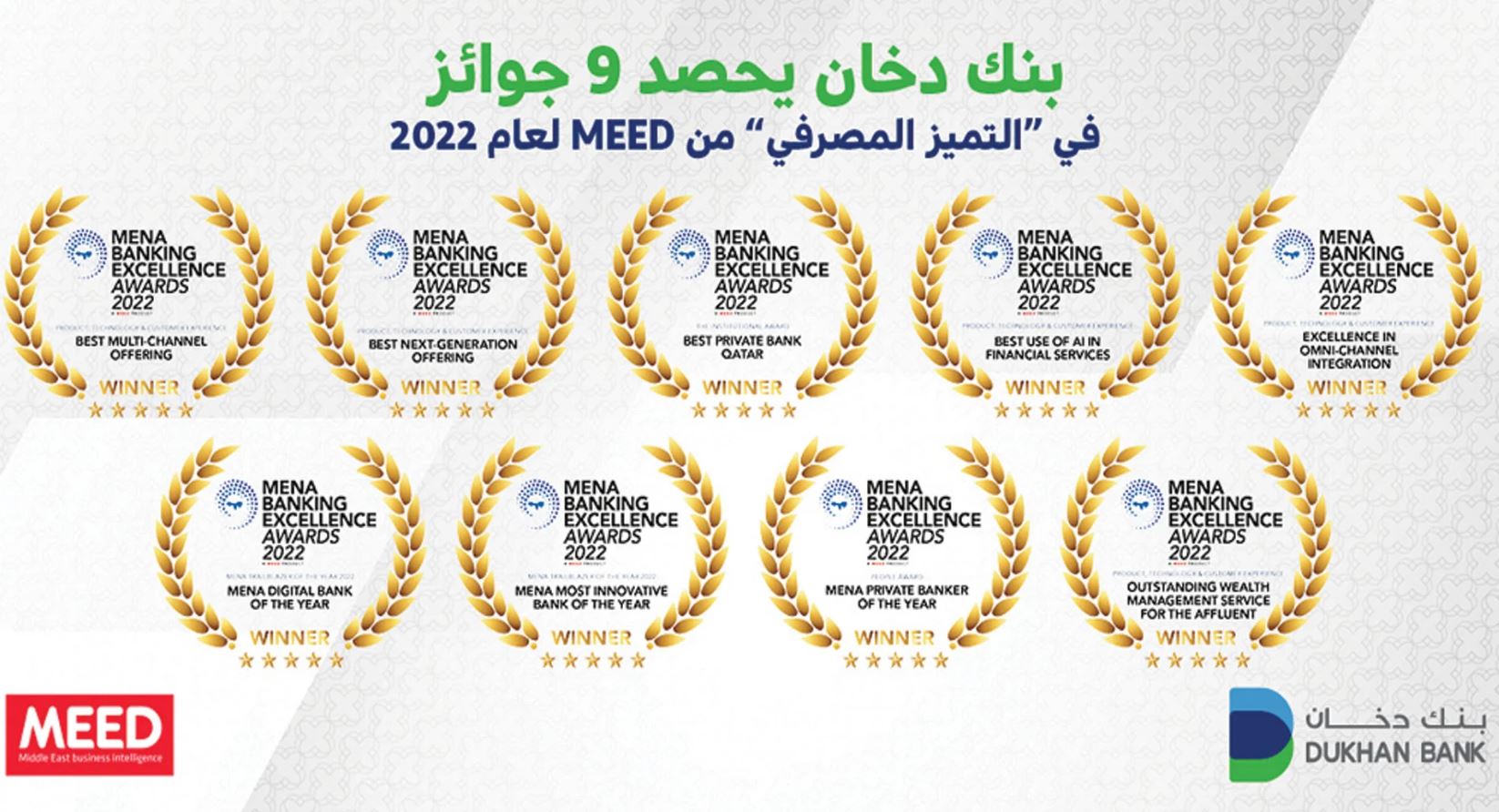 توجت مجلة ميد «MEED» جهود بنك دخان المميزة في تقديم الخدمات المصرفية الخاصة وريادته في إثراء التجربة المصرفية الرقمية لعملائه بحلول مبتكرة، بمنحه 9 جوائز ضمن برنامج الجوائز السنوية «التميّز المصرفي على مستوى منطقة الشرق الأوسط وشمال إفريقيا لعام 2022». وحصد بنك دخان جائزة «أفضل بنك للخدمات المصرفية» في قطر بينما حصل السيد شوقي ضاهر، مدير عام الخدمات المصرفية الخاصة في بنك دخان، على جائزة أفضل مصرفي للخدمات المصرفية الخاصة في الشرق الأوسط وشمال إفريقيا لعام 2022، وذلك تقديرًا لتاريخه المهني العريق ولتحقيقه نجاحات مبهرة في إدارة القسم وفق استراتيجية تطورية، كان لها دور محوري في تصميم خدمات مصرفية راقية تعزز العلاقات مع العملاء من مختلف الأجيال وتضمن ولاءهم. كما فاز بنك دخان بسبع جوائز أخرى هي: «أفضل بنك رقمي في الشرق الأوسط وشمال إفريقيا» و «البنك الأكثر ابتكارًا في الشرق الأوسط وشمال إفريقيا» لعام 2022، وحصل المساعد الافتراضي «راشد» من بنك دخان، على جائزة «أفضل استخدام للذكاء الاصطناعي في الخدمات المالية والتميز في التكامل المتعدد القنوات»، وجائزة «أفضل قنوات متعددة وأفضل تقديمات للجيل القادم». وأيضًا، حصدت مجموعة استثمارات البنك المتوافقة مع الشريعة الإسلامية جائزة «الخدمة الفائقة في إدارة الثروات». وتكرّس هذه الجوائز مكانة البنك الريادية كأفضل بنك للصيرفة الإسلامية، وتعبّر عن تقدير عميق لقدراته بأن يتفوق على المنافسة في تبني وتطبيق آخر التقنيات العالمية في القطاع المصرفي. ويشار إلى أن النسخة الأولى من برنامج «جوائز التميّز المصرفي في الشرق الأوسط وشمال إفريقيا»، قد حرصت على تكريم أفضل مؤسسات الخدمات المالية الراقية والأفراد أيضًا، وذلك تقديرًا لهم على جهودهم وابتكاراتهم النوعية والتزامهم بضمان أفضل خدمة متميّزة للعملاء. في هذه المناسبة، أكد السيد خالد السبيعي، الرئيس التنفيذي لبنك دخان أن الفوز الجديد يضاف إلى سلسلة إنجازات البنك، كما يؤكد على فعالية استراتيجية البنك في تصميم خدمات مصرفية عالية الجودة تلبي تطلعات عملائه، حيث صرح قائلًا: «يشرفني أن أتوجه بخالص التهاني إلى عائلة بنك دخان من إدارةٍ وموظفين، على هذا الإنجاز الكبير، الذي يثبت من دون شك أن جهودنا والتزامنا بإثراء تجربة عملائنا المصرفية قد أثمرت، وبأننا لم نألُ جهدًا في بذل كل مستطاع لتعزيز القطاع المصرفي في قطر بخدمات ومنتجات قلّ نظيرُها وترتكز على مستويات عالمية من التقنيات الرقمية. ونؤكد هنا أننا ماضون في استراتيجيتنا التنموية لنبقى دائمًا محط ثقة عملائنا، وأن يكون بنك دخان هو البنك المفضل لهم. من جهته، علق السيد ضاهر: «يشّرفنا أن نضيف هذا الفوز الكبير إلى سجلات نجاحاتنا ونراه تأكيدًا إضافيًا على مكانة البنك الريادية بوصفه أفضل خيار مصرفي للعملاء، وأيضًا على دوره في قيادة قطاع الخدمات المصرفية الخاصة في قطر. وأود أن أنوه أن هذه الجوائز أيضًا هي تقدير عميق لفريقنا وزملائنا من الخبراء في الخدمات المصرفية الخاصة، الذين ساهمت جهودهم المثابرة بتطوير القطاع بشكل عام». تؤكد الجوائز التي فاز بها بنك دخان تقديرًا لتميزه في الخدمات المصرفية الرقمية، على أن جهوده المستمرة منذ عام 2020 في تعزيز استراتيجيته للتحول الرقمي، تسفر اليوم عن تعزيز وإثراء محفظته للخدمات والمنتجات الرقمية النوعية وتلفت أنظار جهات ولجان التقدير العالمية. فاليوم، يتصدر البنك القطاع من خلال تقديماته لسلسلة من التطورات غير المسبوقة، على تطبيقه على الجوال الذي من خلاله يستطيع العملاء متابعة الودائع، حسابات إدارة الثروات، وخدمات حساب العملات الأجنبية. كما أن البنك قد ألقى قيمة مضافة على خدماته الرقمية عبر الجوال، حين أطلق منصة D-Pay التي تمنح العملاء قابلية إنجاز عمليات الدفع بسلاسة وبشكل أسهل، دون الحاجة إلى حمل مبالغ نقدية والبطاقات الائتمانية. وتوّج بنك دخان جهوده بإطلاق أول بطاقة رقمية مسبقة الدفع في قطر «
