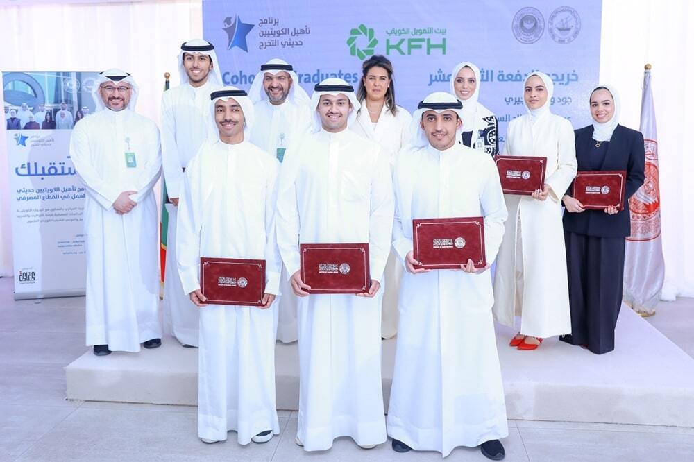 • ضمن مبادرة كفاءة بالتعاون مع البنوك و«الدراسات المصرفية» احتفى بيت التمويل الكويتي بتخرج 6 من موظفيه في ختام مشاركتهم الناجحة في برنامج «تأهيل الكويتيين حديثي التخرج للعمل في القطاع المصرفي» (KGDP) في دورته الثانية عشرة، كأكبر البنوك استقطاباً للشباب حديثي التخرج من الجنسين على مستوى البرنامج التدريبي الذي يعقد سنوياً، تأكيداً على استراتيجيته في تدريب وتأهيل القدرات البشرية الوطنية وإتاحة الفرص أمامهم للعمل وتولي المناصب القيادية وتطوير مهاراتهم العملية وقدراتهم الإبداعية بما يحقق الارتقاء بمستوى الأداء وتحقيق طموحات البنك وعملائه. ويحرص بيت التمويل الكويتي على استقطاب أفضل العناصر من الشباب، وإتاحة الفرص أمامهم ليكونوا قادة المستقبل، ويعتبر أن النجاح في تحقيق أهدافه الرئيسية وتعزيز مكانته الاستراتيجية يعتمد في المقام الأول على جهود وتميز موارده البشرية، ومواصلة الاستثمار فيها، ودعم وتشجيع الموظفين وتنمية وتطوير مهاراتهم وإثراء خبراتهم. ويعد برنامج «تأهيل الكويتيين حديثي التخرج للعمل في القطاع المصرفي» أحد برامج مبادرة «كفاءة» التي أطلقها بنك الكويت المركزي بالتعاون مع البنوك الكويتية ومعهد الدراسات المصرفية، ويمثل أحد أفضل الخيارات لحديثي التخرج الراغبين في العمل بالقطاع المصرفي والمالي، لما يشتمل عليه من تنوع في المواد التدريبية والمتخصصة في المجال المصرفي والمالي، التي تحمل أهمية بالغة لتعيين المتدربين الذين وقع عليهم الاختيار في تلك البنوك، بعد تأهيلهم للعمل في هذا القطاع المهم من خلال تدريبهم لمدة عام كامل قبل تسلمهم مهام وظائفهم المصرفية. ويساعد البرنامج الشباب من حديثي التخرج على اكتساب المهارات اللازمة لسوق العمل بعد الانتهاء من المرحلة التعليمية الأكاديمية، من خلال تدريب نظري وعملي مما يثري خبرة المشاركين ويجهزهم للعمل، بالكفاءة المطلوبة، ويشمل البرنامج محاضرات وتدريباً إلكترونياً بالتعاون مع أعرق الشركات المتخصصة، إضافة الى تدريب ميداني في البنوك الكويتية المحلية، بهدف حصول المتدربين على الخبرة العملية وربط الجوانب النظرية بالواقع العملي، ثم تبدأ مرحلة التدريب الميداني خارج الكويت، بإيفاد المشاركين إلى العديد من البلدان المتقدمة في مجال العمل المصرفي للتدرب على أحدث ما وصلت إليه تقنيات العمل في القطاع المصرفي والمالي، بهدف التعرف على الممارسات المصرفية الخارجية واكتساب خبرة دولية.
