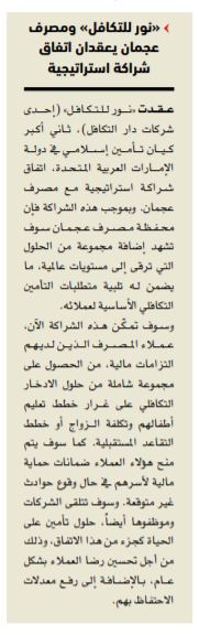 نور للتكافل ومصرف عجمان يعقدان اتفاق شراكة استراتيجية