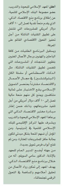 المعهد الإسلامي للبحوث والتدريب يطلق برنامج مِ نَح الاقتصاد الذكي