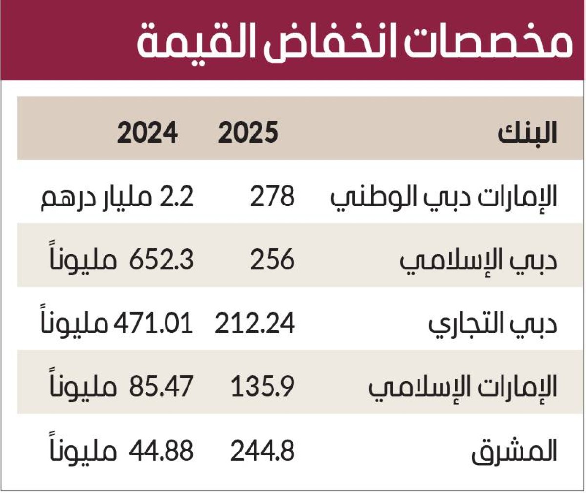 3 بنوك بدبي تقلّص مخصصات انخفاض القيمة 77.6 %
